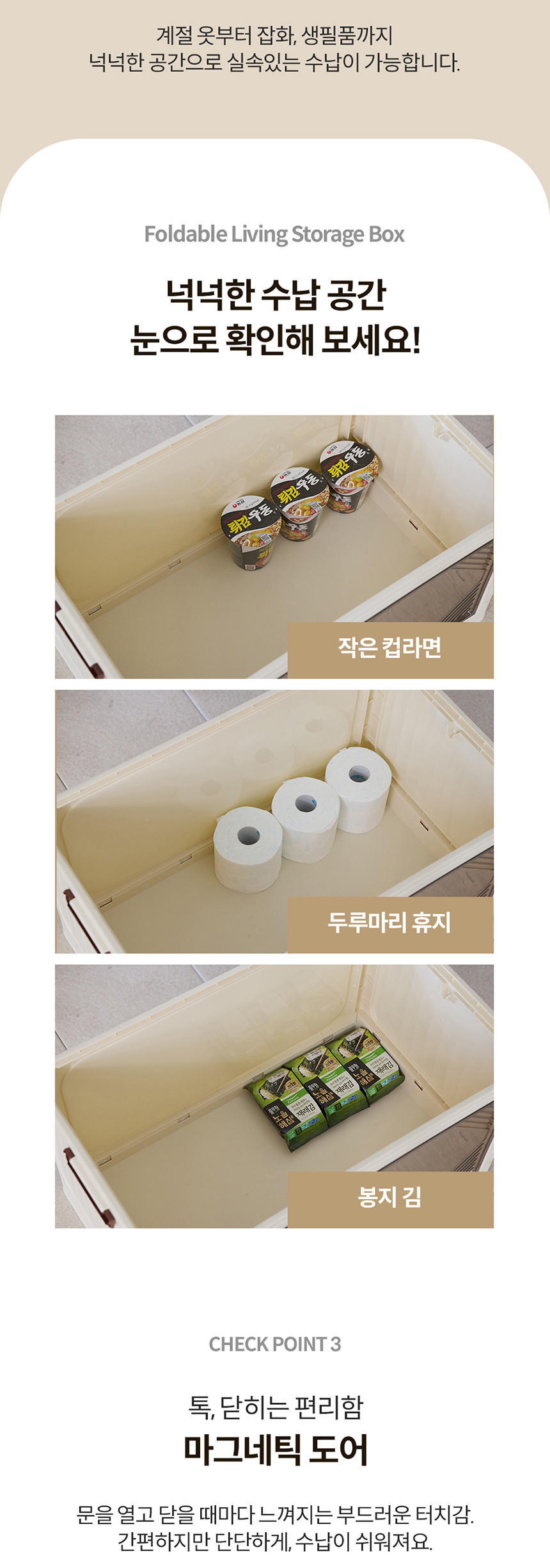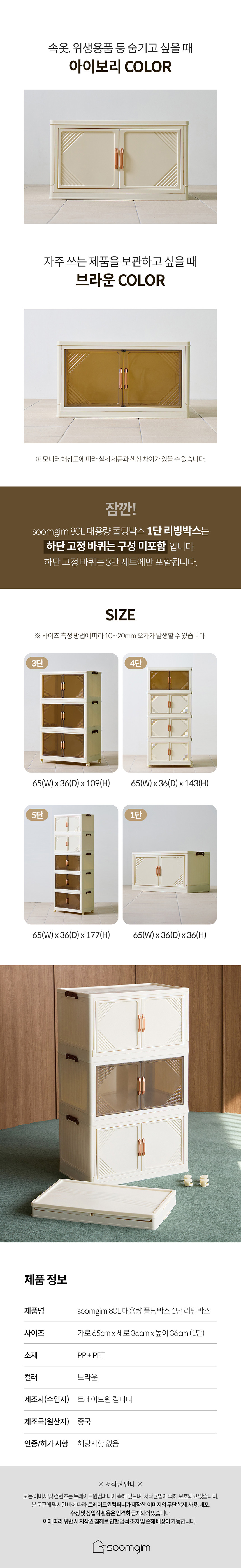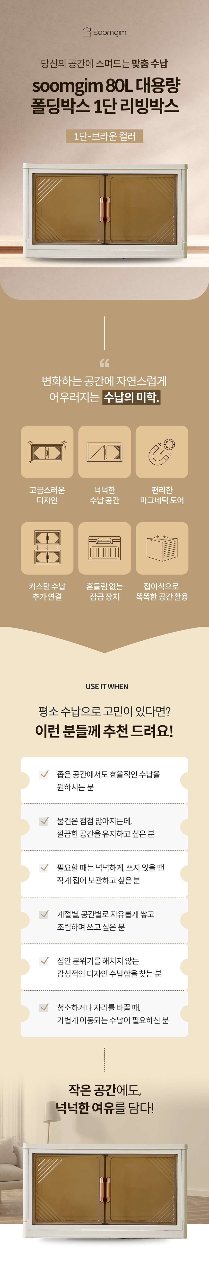 soomgim 80L 대용량 폴딩박스 1단 접이식 리빙박스 65cm 수납함 아이보리